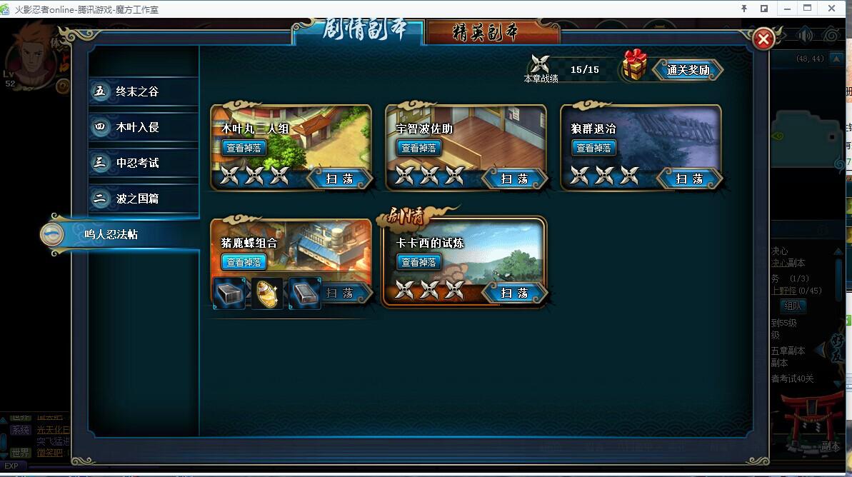 第一章鸣人忍法贴 通关材料 :黄铜 黑铁 生铁 通关奖励:樱[少年篇]